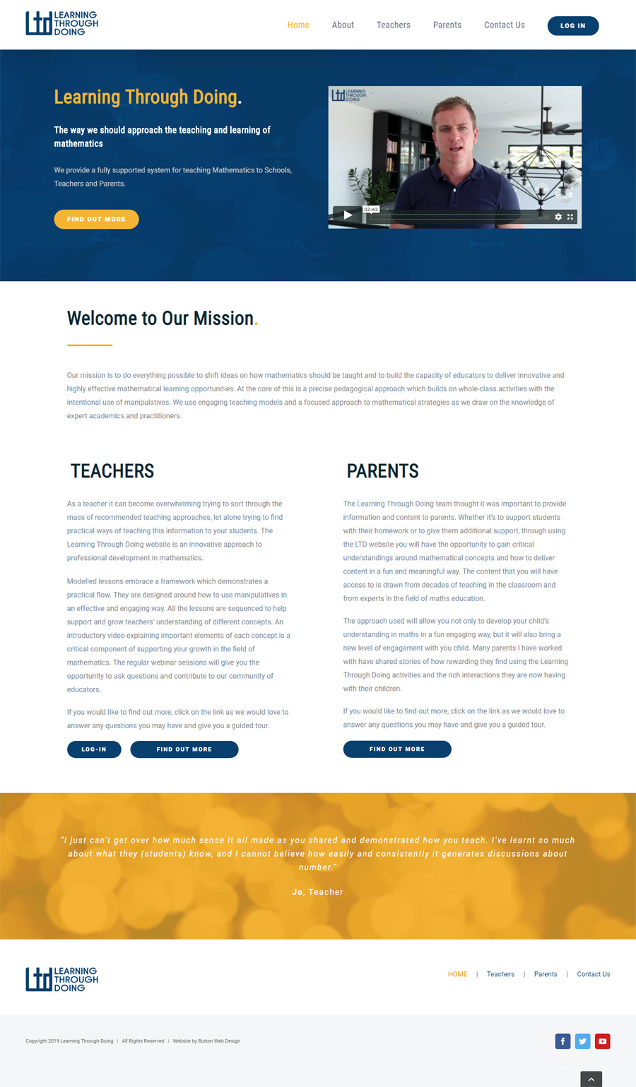 Button Web Design created branding and a full function website for Learning Through Doing but also guidance on the technicalities of broadcasting live webinars via Youtube.