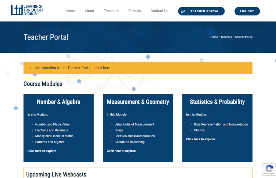 Learning Through Doing provide online Mathematics support for Teachers and home educators. They do this using online video organised into modules and with interactive support through scheduled live video webcasts.